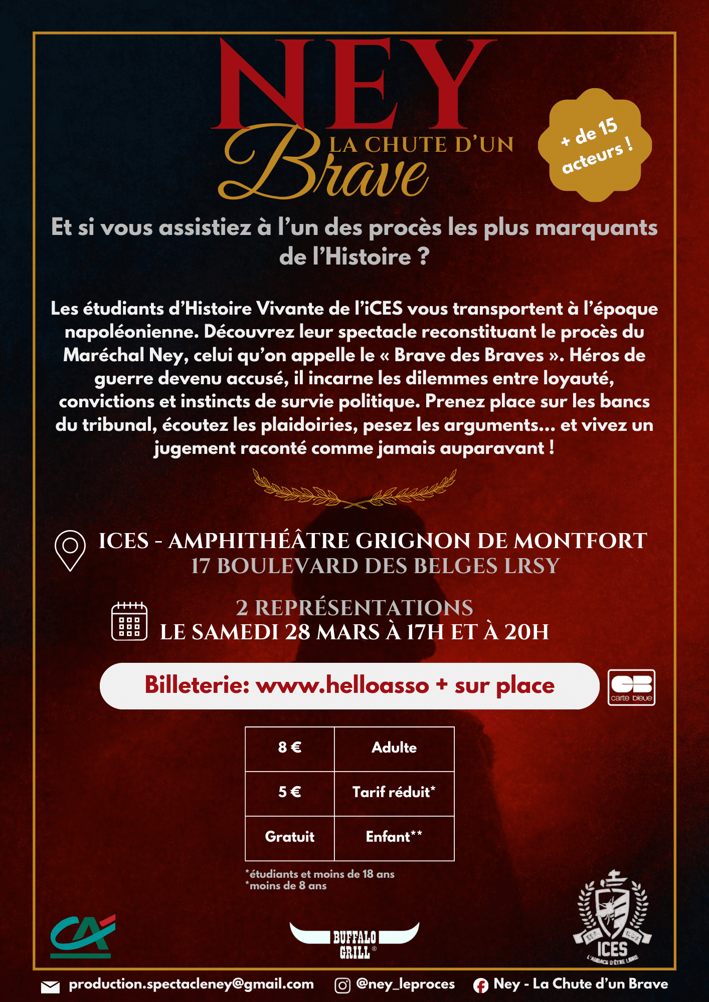 Le samedi 28 mars 2026, l'ICES propose une expérience mémorielle inédite portée par dix étudiants du Master Histoire Vivante. Le spectacle "Ney, la chute d'un Brave" constitue une démonstration de médiation culturelle appliquée à une figure majeure de l'histoire de France et du patrimoine yonnais.