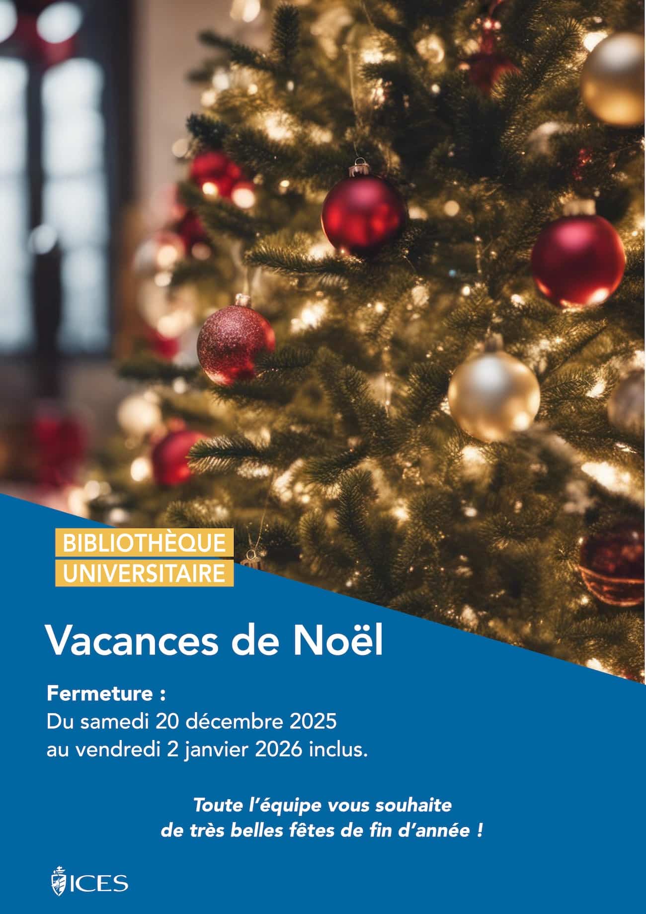 La BU sera fermée du samedi 20 janvier 2025 au vendredi 2 janvier 2026 inclus.